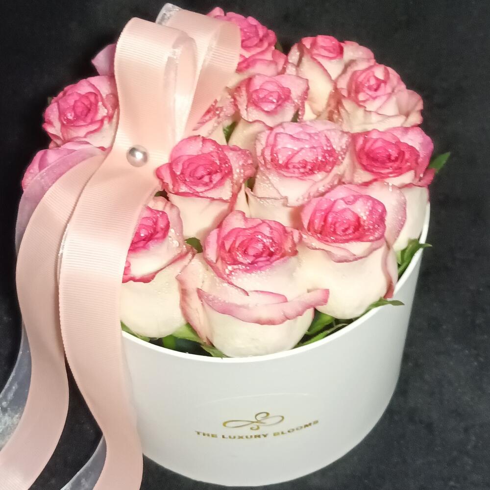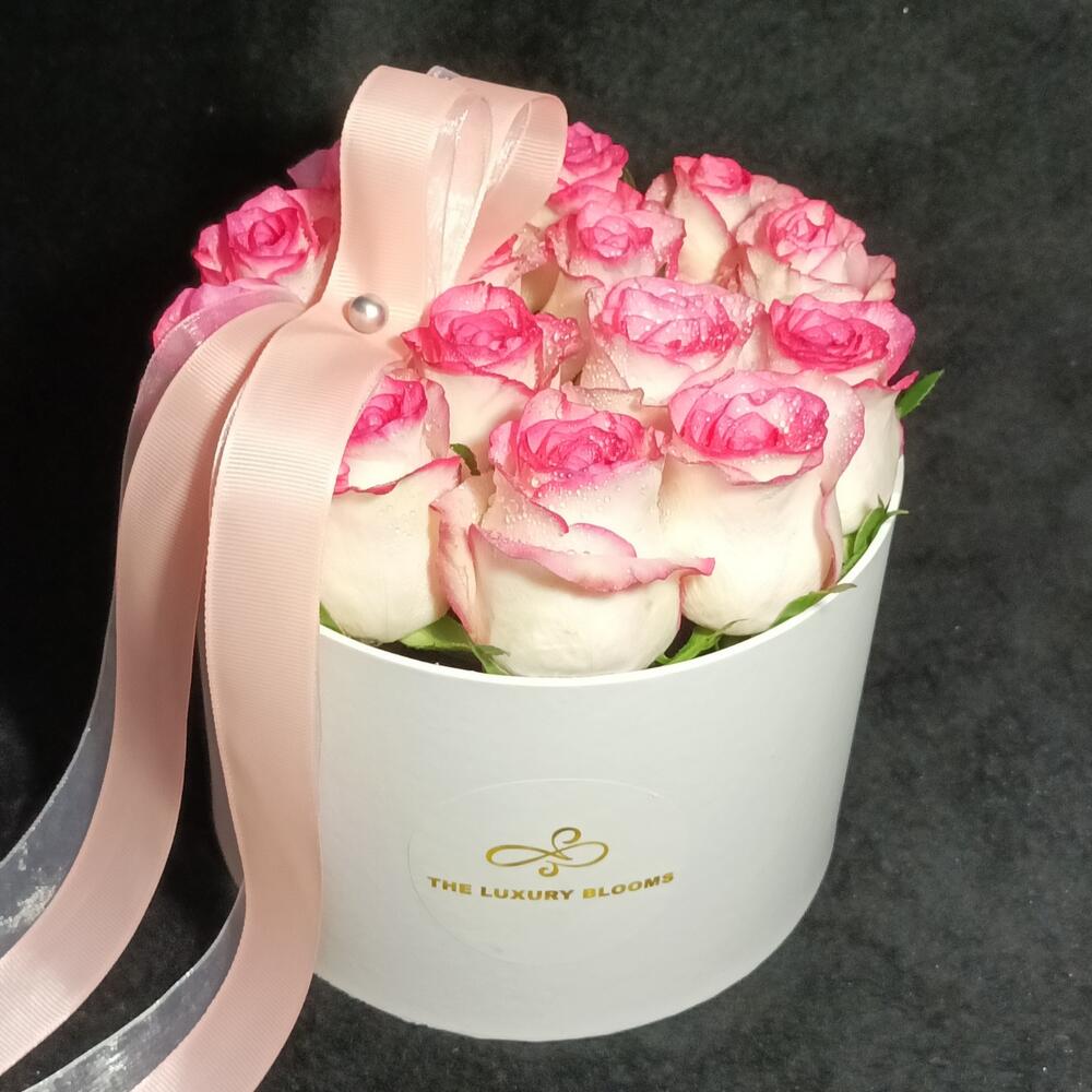 Pink rose - 15 шт. white round box - 1 шт.