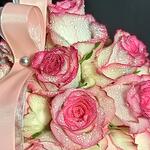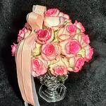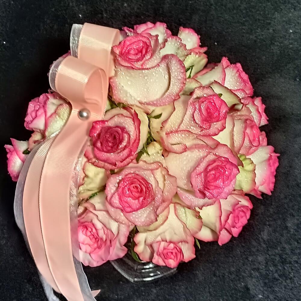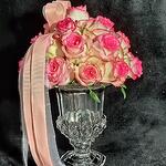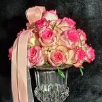 Pink rose - 27 шт. хрустальная ваза - 1 шт. шелковая лента и жемчужная булавка - 1 шт.