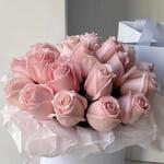 Satin ribbon - 1 шт. Pink rose - 19 шт. oasis floral - 1 шт. wrapping paper - 1 шт. hat box - 1 шт. card - 1 шт. good feelings - 100 шт. instruction - 1 шт.