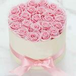 Описание товара: 20-23 розовых роз Оформлены в белой круглой коробке с ленточным бантом