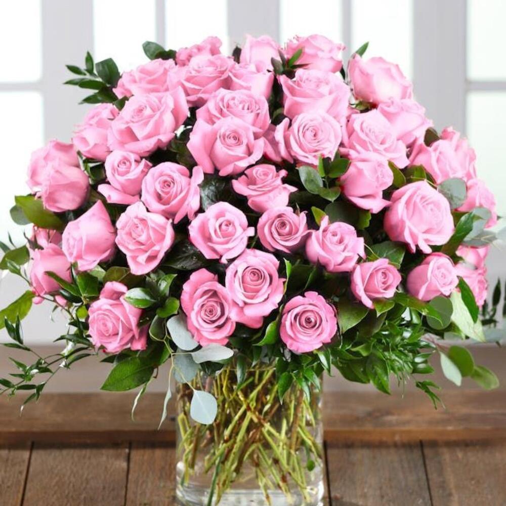 Розовые розы в вазе XL