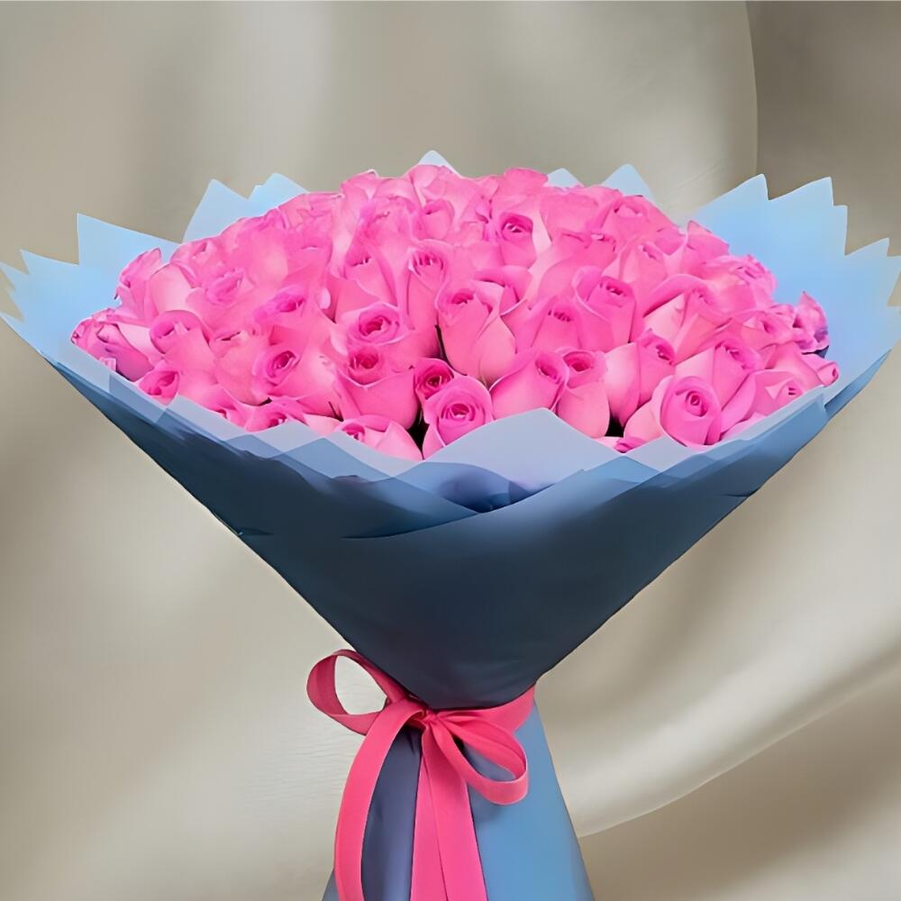 pink roses - 101 шт. розовая обёрточная бумага - 12 шт. розовая ленточная игрушка - 1 шт.