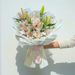 розовая лилия - 10 шт. гипсофила - 3 шт.