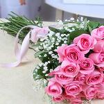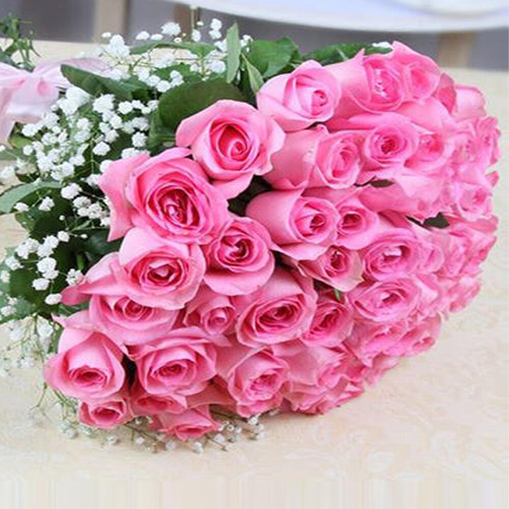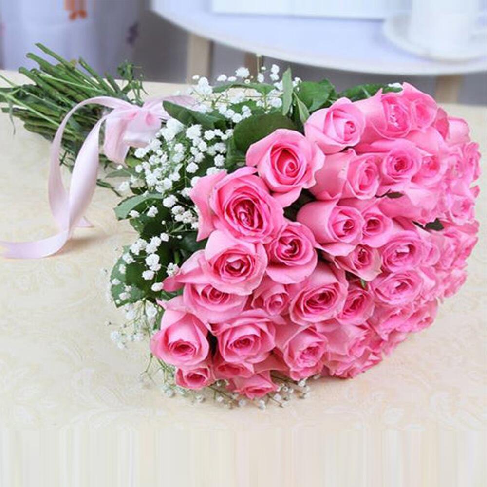 Окунитесь в элегантность этого потрясающего моно-букета, в котором 35 нежных розовых роз. Изящные штрихи трёх пышных веточек гипсофилы привносят в букет лёгкость и игривость; он бережно собран и перевязан очаровательной лентой. Истинный символ любви и восхищения, эти изысканные цветы — идеальный выбор для любого случая. Выразите свои чувства с этой вечной классикой, призванной оставить неизгладимое впечатление.