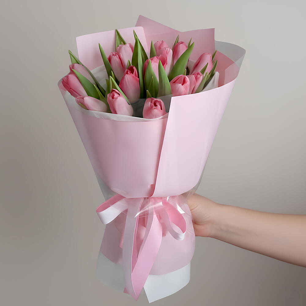 Нежный шарм – 15 розовых тюльпанов