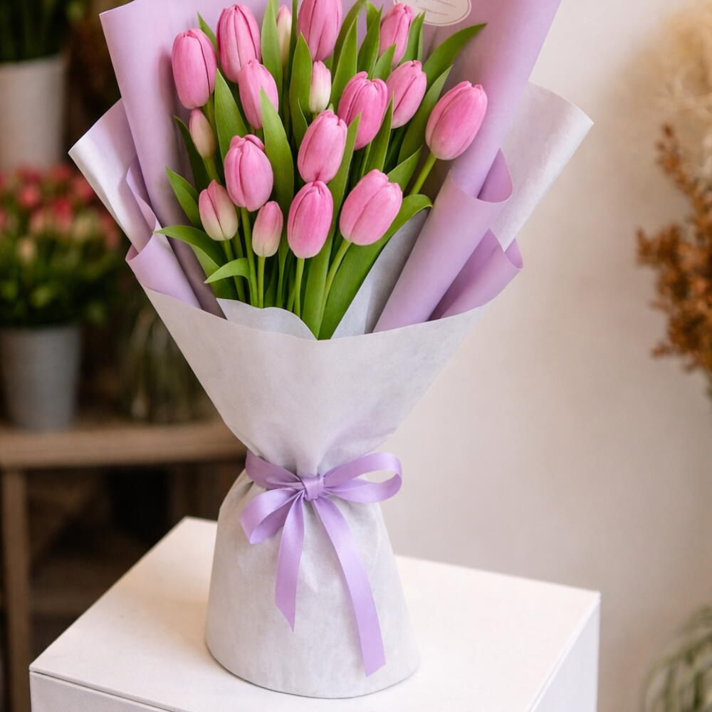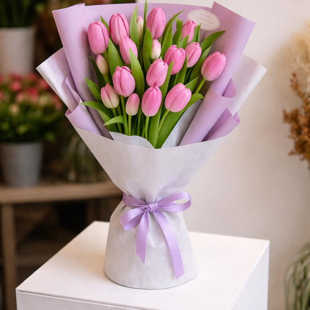pink tulips - 21 шт.