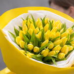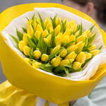 This elegant bouquet of soft pink tulips is the embodiment of tenderness and charm. Each tulip bud is carefully selected to create a harmonious and full arrangement that speaks of admiration, joy, and warmth. Wrapped in a stylish monochrome paper, the bouquet makes a timeless and graceful gift for birthdays, romantic gestures, or simply to brighten someone’s day. To prolong the life of your tulips, keep the bouquet in a cool place, away from direct sunlight and drafts. Trim the stems every other day and place them in fresh water. A pinch of sugar or a few drops of lemon juice can also help maintain their freshness.