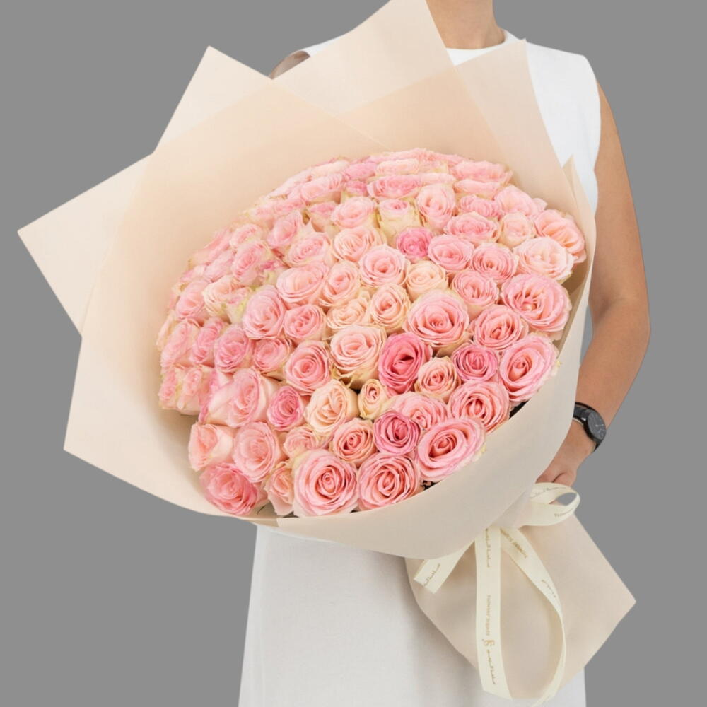 Pink Union _ Букет из 99 роскошных розовых роз на годовщину или День святого Валентина