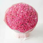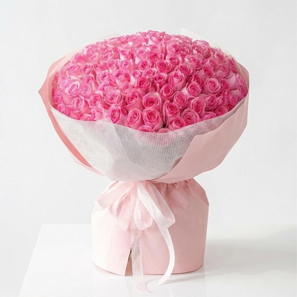 Розовый Валентин Отпразднуйте любовь в ее самой нежной и сладкой форме с букетом «Розовый Валентин» — вневременным букетом из 99 розовых роз премиум-класса, красиво упакованным в нежно-розовую обертку для создания непринужденно романтичного завершения. Каждая роза отобрана вручную за свою свежесть, нежный оттенок и бархатистые лепестки, создавая букет, который говорит на языке любви без слов. Розовые розы символизируют восхищение, привязанность и нежную романтику, что делает эту композицию идеальной для Дня святого Валентина, годовщин, предложений руки и сердца или просто для того, чтобы напомнить кому-то, насколько он особенный. Элегантный, женственный и трогательный — этот букет создан, чтобы оставить неизгладимое впечатление. ⸻ 🌸 Подробная информация о товаре • Цветы: 99 свежих розовых роз • Упаковка: Премиальная упаковка светло-розового цвета • Стиль: Нежный, романтичный и элегантный • Повод: День святого Валентина, годовщины, сюрпризы для влюбленных ⸻ 💕 Идеально подходит для: • Подарков на День святого Валентина • Романтических сюрпризов • Выражения любви и восхищения • Для ценителей элегантных и эстетичных цветов ⸻ ✨ Почему вам это понравится: • Премиальные розы на длинных стеблях • Нежная пастельная эстетика Дня святого Валентина • Создано вручную профессиональными флористами • Идеально подходит для Instagram и неподвластна времени