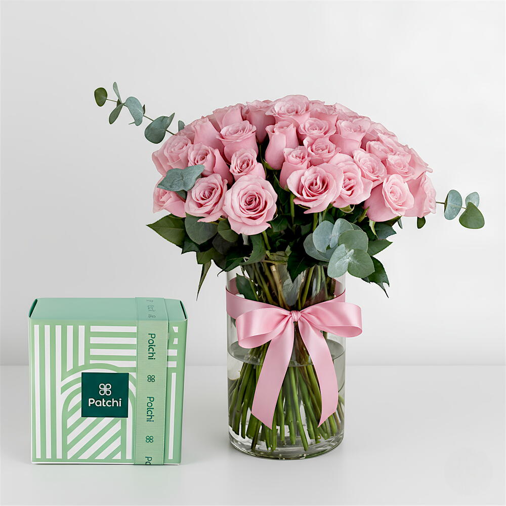 Нежная, очаровательная и полная изящества, эта композиция представляет собой 21 нежную розовую розу в красивой вазе, дополненную 500 г высококачественного шоколада Patchi. Идеально подходит для дней рождения, выражения благодарности и трогательных моментов. Закажите заранее на День святого Валентина, чтобы избежать спешки в последнюю минуту.