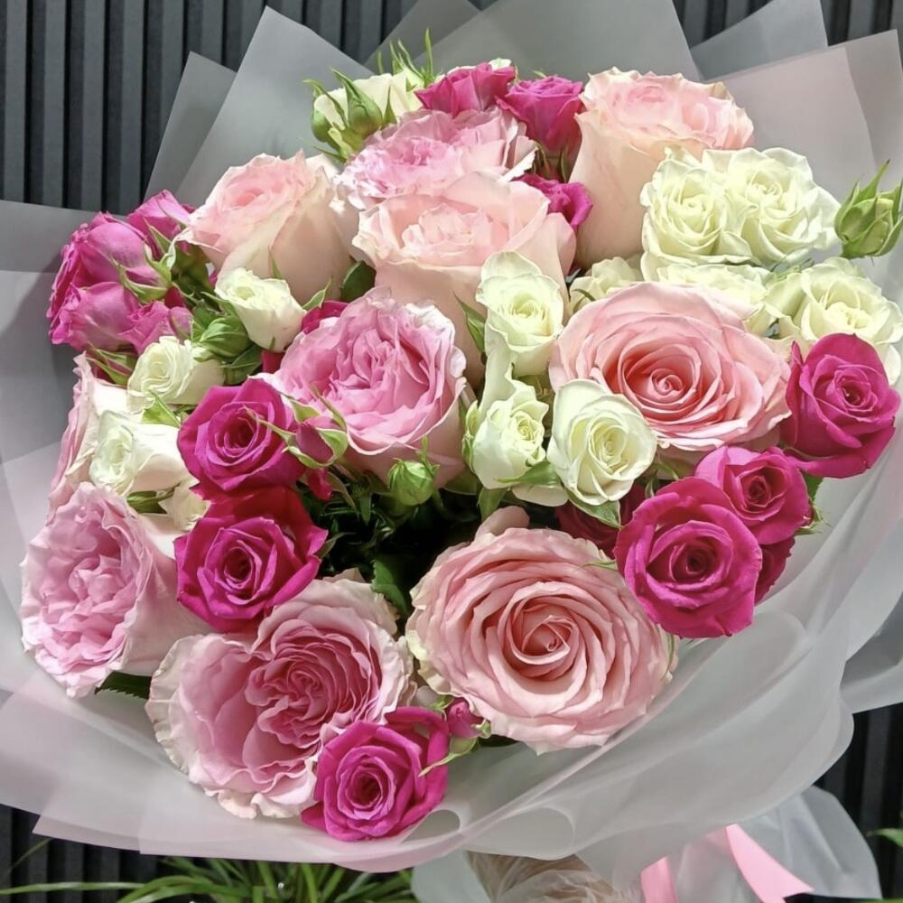 Роза одноголовая - 10 шт. white baby rose - 4 шт. pink baby rose - 4 шт.