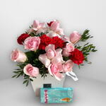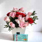 Роскошное сочетание изящных красных гвоздик, нежных розовых роз и восхитительных шоколадных конфет с фисташковой кунафой, красиво оформленное в стильной коробке. Этот изысканный цветочно-шоколадный подарок идеально сочетает сладость шоколада с элегантностью свежих цветов, символизируя любовь, восхищение и наслаждение. Идеально для особых случаев, таких как дни рождения и годовщины, а также в качестве приятного сюрприза, Pistachio Kunafah Chocolate with Bloom Box придает любому празднику нотку элегантности и очарования. Закажите сейчас, чтобы выразить свои искренние чувства этим потрясающим сочетанием цветов и шоколада!