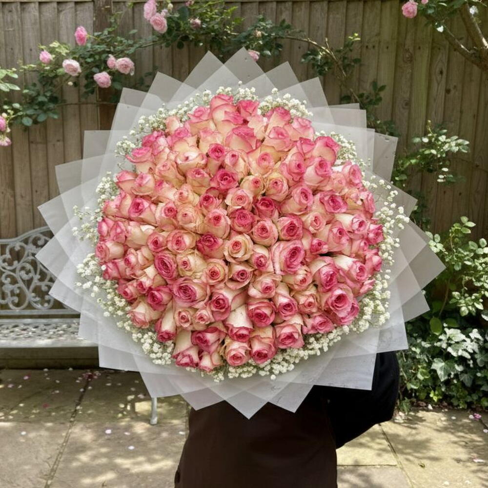 Gypsophila - 5 шт. премиальные розовые розы - 101 шт.