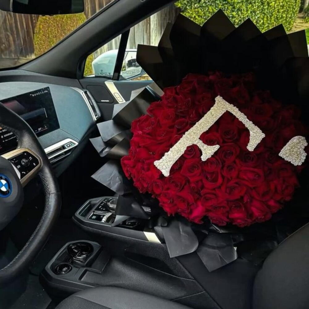 Премиум букет из 101 красной розы с персонализированным инициалом