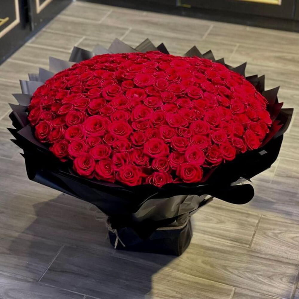 Необычайный и роскошный букет из двухсот премиальных красных роз — величественное проявление любви, страсти и величия. Каждая роза тщательно отобрана за глубокий багровый оттенок и исключительное качество, соединяясь в поражающую воображение композицию, которая говорит о глубокой привязанности и восхищении. Идеально подходит для грандиозных торжеств, масштабных романтических жестов, свадеб или незабываемых моментов, когда годится лишь самое эффектное выражение любви.