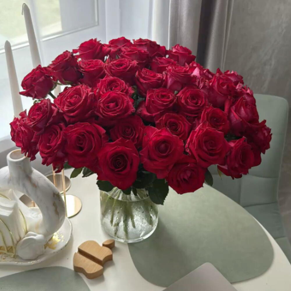 ❤️ 50 премиальных красных роз в вазе 🌹✨ Шик. Страсть. Элегантность без лишних усилий. Наши 50 премиальных красных роз в вазе — это идеальное сочетание роскоши и простоты, воплощение вечной любви и изысканности. Каждая бархатисто-красная роза тщательно отбирается вручную по размеру, цвету и совершенству, а затем красиво оформляется в элегантной вазе, создавая центральное украшение, излучающее романтику и очарование. Будь то роскошный романтический жест или роскошный подарок, чтобы скрасить чей-то день, этот букет в вазе создан, чтобы мгновенно произвести впечатление — без упаковки, без аранжировки, только чистая красота, готовая к показу. 💐 Почему вам понравится: 🌹 50 отборных премиальных красных роз — пышных, ярких и идеально распустившихся. ✨ Красиво оформлен в вазе — элегантно и готово к наслаждению. 🌿 Профессиональная флористика, созданная для полноты и гармонии. 🌸 Длительная свежесть гарантирована на долгие дни красоты. 🎁 Идеально подходит для любого случая: романтических сюрпризов, годовщин, дней рождения или роскошного подарка. 💌 В комплект входит бесплатная открытка с текстом, чтобы идеально выразить ваши эмоции. 🌟 Идеально для: Выражения глубокой любви и восхищения Создания романтического признания, которое запомнится надолго Роскошный подарок без лишних хлопот — красивый и готовый к демонстрации 💫 50 роз. Бесконечная любовь. Непринужденная элегантность. 50 премиальных красных роз в вазе — где красота встречается с удобством в идеальной гармонии.