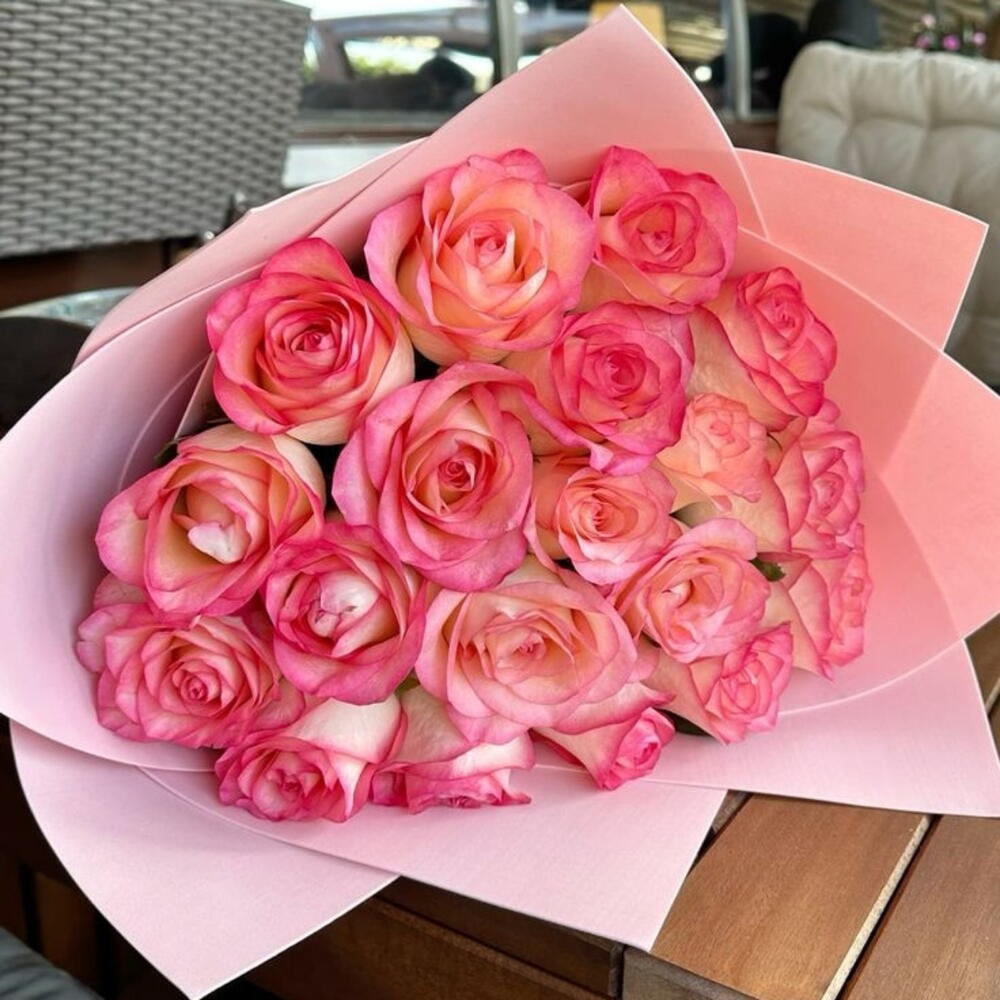 Букет из 20 розовых роз Нежное выражение радости 🌸💕 Сделайте их день ярче с этим прекрасным букетом из двадцати свежих розовых роз. Каждый мягкий бутон с румяным оттенком аккуратно оформлен вручную, чтобы излучать тепло, радость и искреннее восхищение — идеально подходит для того, чтобы разделить искренний момент заботы и близости. Почему это так мило: 💗 Искреннее чувство: 20 роз символизируют истинную привязанность и полную искренность 🌸 Нежность: очаровательные розовые оттенки, выражающие мягкую радость и благодарность 🎀 Свежесть и аромат: отборные розы с пышными лепестками и лёгким, сладким ароматом 💝 Идеально для: дней рождения, благодарностей, поздравлений или тёплых жестов «думаю о тебе» Простой, красивый букет, который превращает повседневные моменты в сладкие воспоминания. ✨