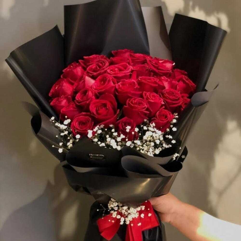 Эти премиальные красные розы — классический символ любви и страсти, идеально подходящие для выражения ваших глубочайших чувств. Каждый бархатный лепесток тщательно выращен, что гарантирует высочайшее качество и визуальную привлекательность в каждом цветке. Букет элегантно оформлен, создавая потрясающую композицию, которая очарует каждого, кто его получит. Будь то особый повод или просто чтобы скрасить чей‑то день, эта композиция наверняка оставит неизгладимое впечатление.