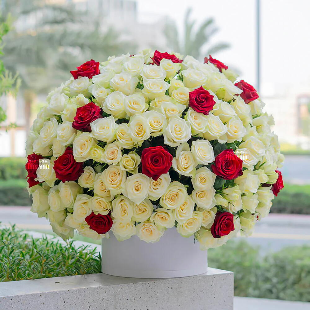 Make every moment unforgettable with our luxury box of 200 premium red and white roses. Beautifully arranged in an elegant round box, this stunning floral masterpiece is perfect for Valentine’s Day, anniversaries, proposals, and special celebrations.