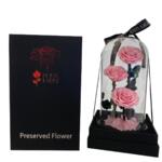 Три стабилизированные розы розового цвета, элегантно размещённые в прозрачном стеклянном куполе и представленные в стильной чёрной подарочной коробке. Вневременный символ изящества, восхищения и вечной любви—идеально подходит для годовщин, Дня святого Валентина, свадеб или роскошных подарков.