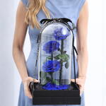 Сделайте этот День святого Валентина по-настоящему незабываемым с 3 вечными синими розами, изящно сохранёнными под стеклянным куполом и представленными в стильной чёрной подарочной коробке. Синие розы символизируют тайну, уникальность и истинную любовь, делая этот подарок утончённым и значимым для кого-то необыкновенного.
