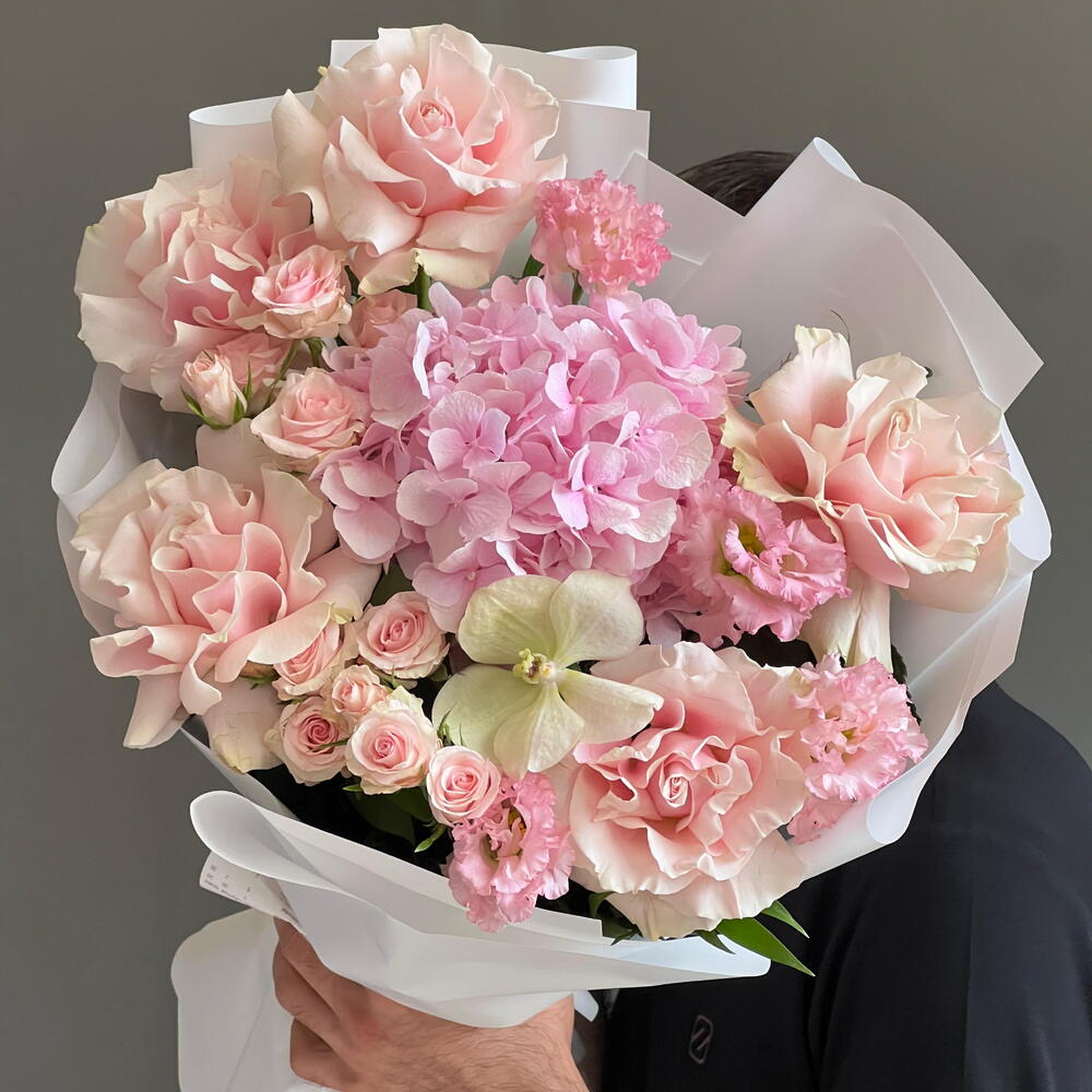 Spray rose - 4 шт. Lisianthus - 2 шт. hydrangeas - 1 шт. roses - 5 шт.
