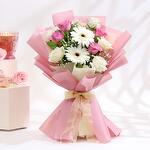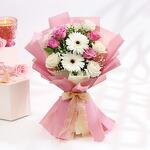 Отмечаете особый повод? Подарите любимому человеку букет из безупречно белых гербер и свежих белых и лиловых роз. Тип цветов: Розы ,Герберы ,Гипсофила Цвет цветов: Ассорти