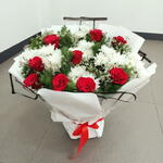 Chrysanthemum - 8 шт. asparagus - 7 шт. red roses - 9 шт.