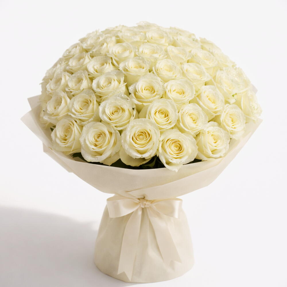Роскошный букет премиальных белых роз, подобранный для моментов, которые заслуживают чистоты, преданности и элегантности. Идеально подходит для Дня святого Валентина, годовщин и значимых проявлений любви.