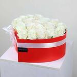 красная коробка в форме сердца - 1 шт. white roses - 21 шт.