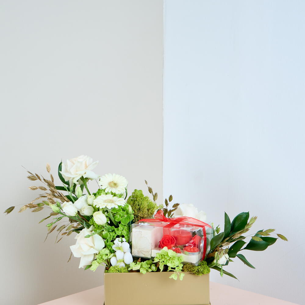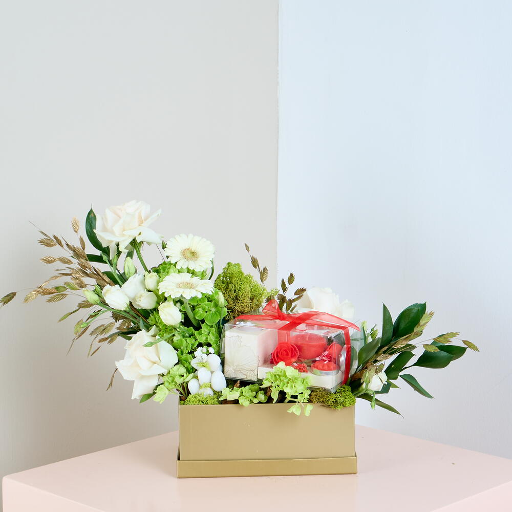 Поднимите настроение с Pure Luxe – роскошным сочетанием природной красоты и изысканной элегантности. Эта очаровательная композиция включает в себя потрясающий ассортимент свежих белых цветов, сочной зелени и фактурных акцентов, искусно оформленных в золотой коробке, излучающей изысканность. В сочетании с восхитительной подарочной коробкой со свечами, Pure Luxe идеально подходит для особых моментов, когда вы хотите стильно выразить свою признательность или любовь. Будь то праздник или просто так, эта композиция – изящный способ привнести радость и элегантность в любое пространство. Подробности подарка: Гербера Розы Лизантус Кустовые розы Гортензия Трахелиум Сухоцветы Рускус Коробка Подарочная коробка Банка