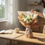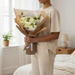 Классический букет из 15 безупречных белых роз, символизирующих чистоту, элегантность и новые начинания. Идеально подходит для выражения грации, восхищения и искренних чувств. Сохраняйте свежесть цветов, подрезая стебли под углом, меняя воду ежедневно и ставя их в прохладное место, вдали от прямых солнечных лучей и сквозняков 45x30