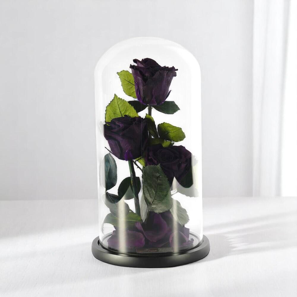 Фиолетовые стабилизированные розы в стеклянном куполе Трио