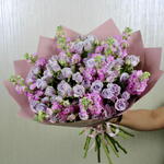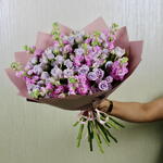 Очаровательный ручной букет, в котором сочетается нежная красота розовой матиолы и яркая элегантность фиолетовых спрей-роз. Нежные розовые оттенки матиолы излучают грацию и нежность, тогда как насыщенные фиолетовые розы добавляют смелую и изысканную ноту. Вместе они создают гармоничное сочетание цвета и текстуры, идеальное для любого случая. Этот букет — продуманный и элегантный жест, приносящий тепло и красоту в каждый момент.