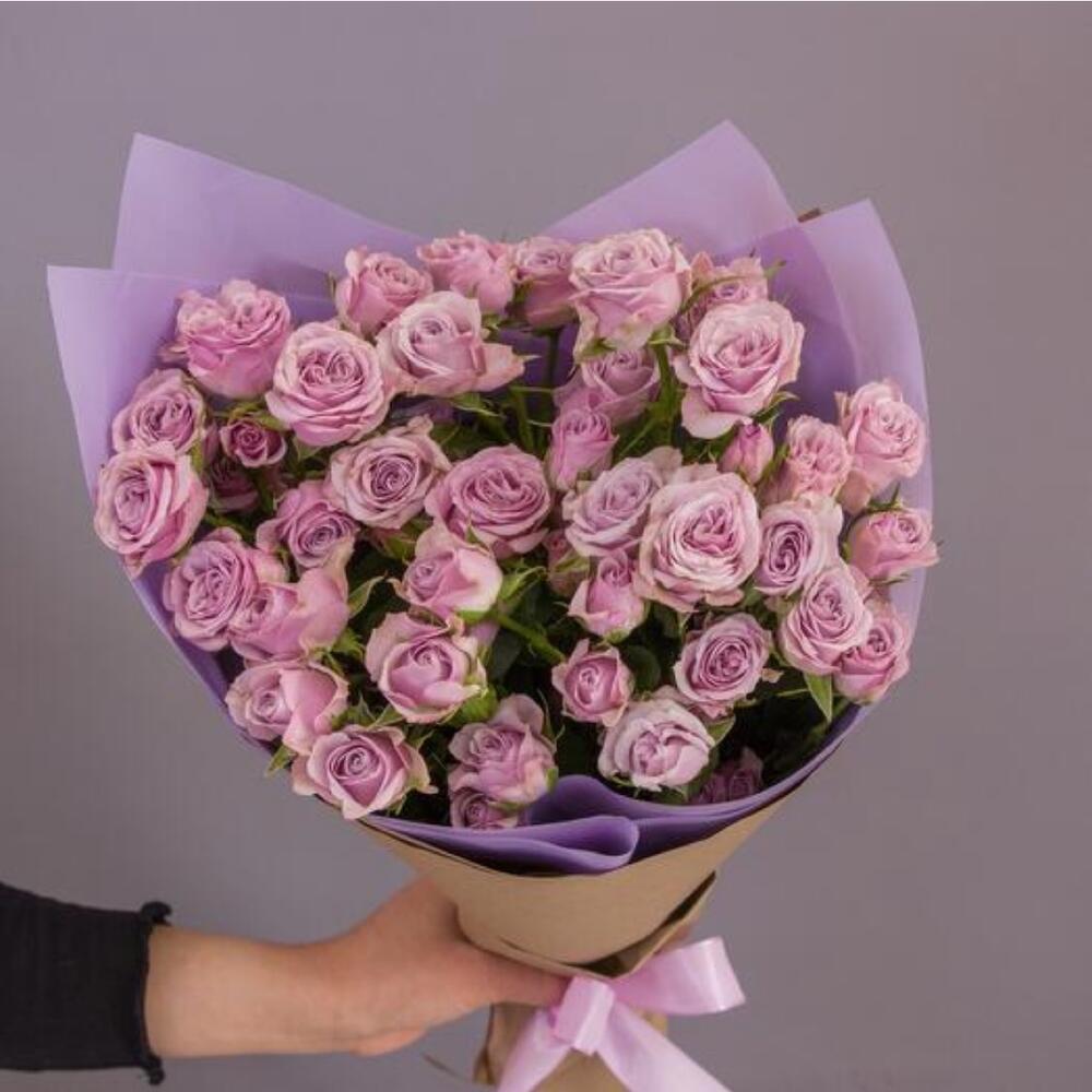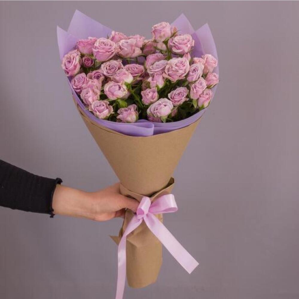 Ribbon - 1 шт. purple spray rose - 9 шт. коричневая упаковочная бумага - 2 шт.
