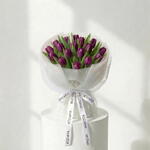 purple tulip - 19 шт. фирменная облачная упаковка - 1 шт. дизайнерская белая сетка - 1 шт.
