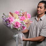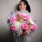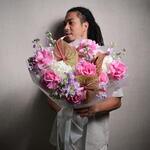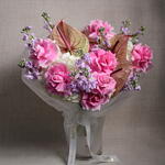 Ribbon - 1 шт. hydrangeas - 5 шт. matthiola - 9 шт. wrapping paper - 5 шт. anthuriums - 3 шт. Розита Роузес - 11 шт.