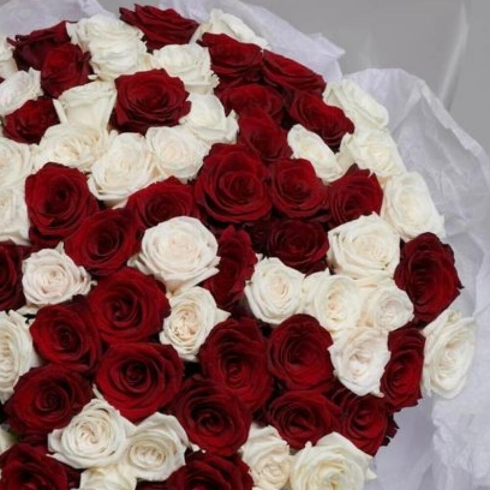 31 белая роза и 70 красных роз ручной работы потрясающий вид