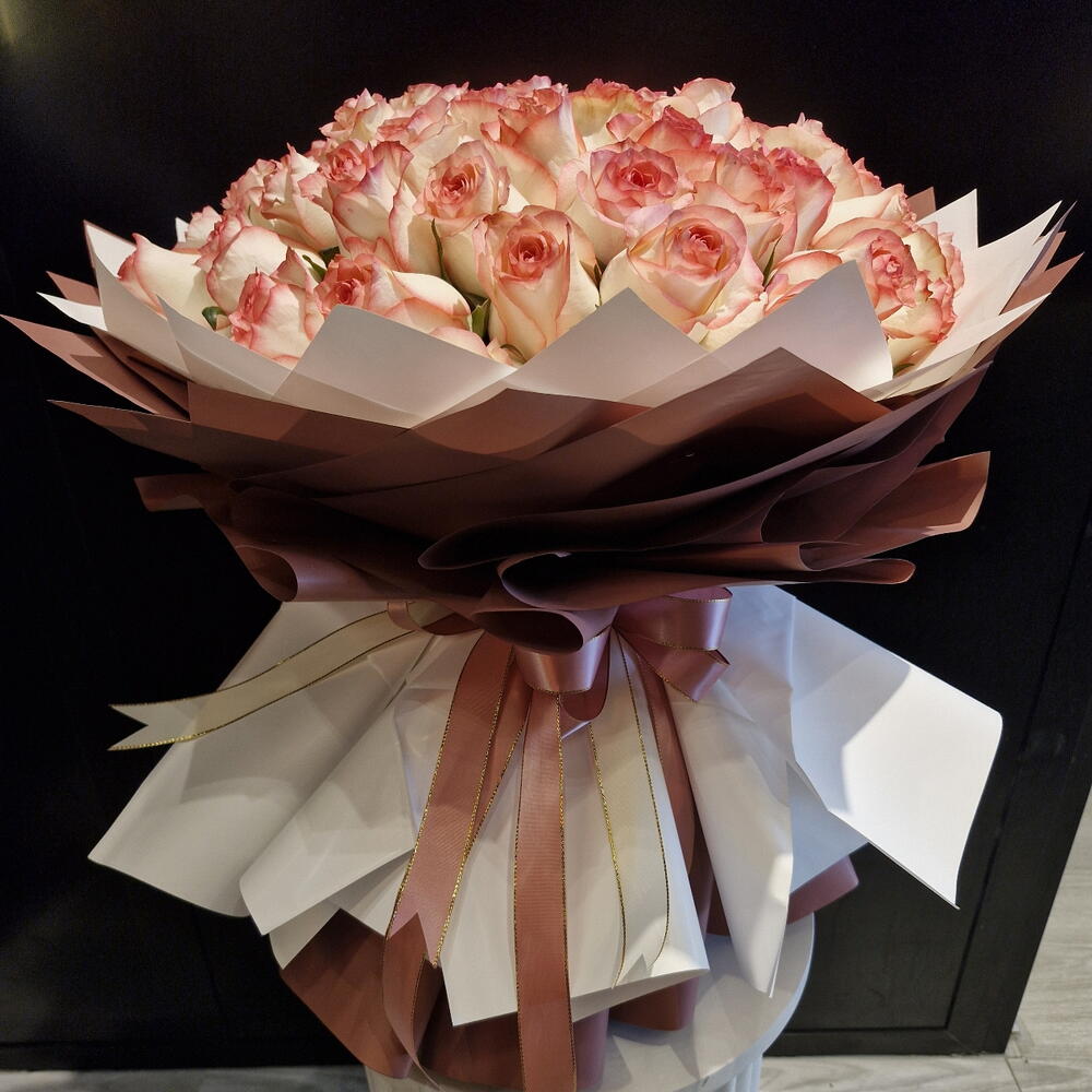 It was supposed to arrive at 3-3:30 but it was delayed until 5. I asked them to make it look fuller but they didn’t. Doesn’t look very similar to the photo