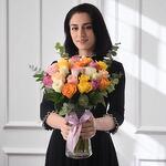 стебли рускуса - 5 шт. оранжевые розы - 4 шт. pink roses - 4 шт. персиковые розы - 4 шт. фиолетовые розы - 4 шт. желтые розы - 4 шт.