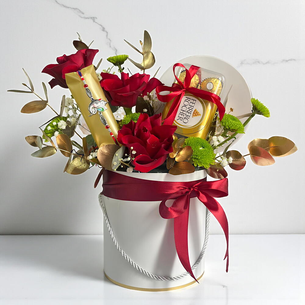 Порадуйте своих близких нашей коробочкой Ferrero Luxe Bloom Box, где элегантность сочетается с чистым декадансом. 🌹 3 сияющие красные розы — символ глубокой привязанности и вечной любви 💚 1 свежая зелёная хризантема — яркий акцент радости 🌿 Золотистый эвкалипт — для праздничного сияния и нежного аромата 🍫 Премиальная коробка Ferrero Rocher из 16 предметов — настоящее сладкое наслаждение Эта корзина, оформленная в элегантную белую памятную коробку, идеально подходит для празднования дней рождения, годовщин, романтических жестов или просто для того, чтобы сделать кому-то радостное событие. ✨ Сделайте этот момент незабываемым — закажите сейчас и доставьте роскошь прямо к двери!