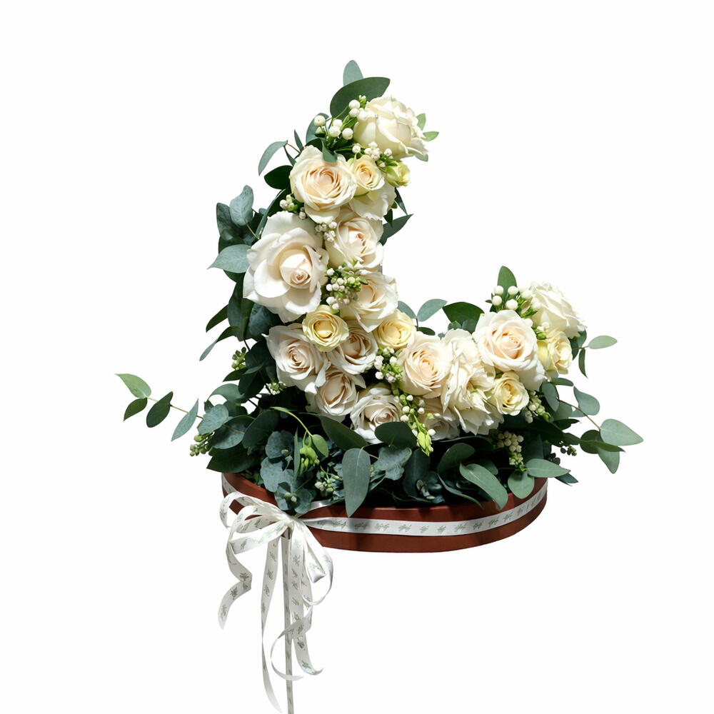 Eucalyptus - 2 шт. White rose - 15 шт. Wax flower - 1 шт. букет роз в брызгах - 1 шт.