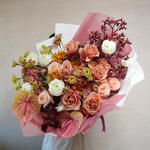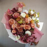 Ранункулюс и антуриум с миксом роз Букет 7148