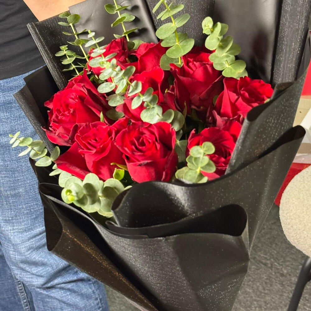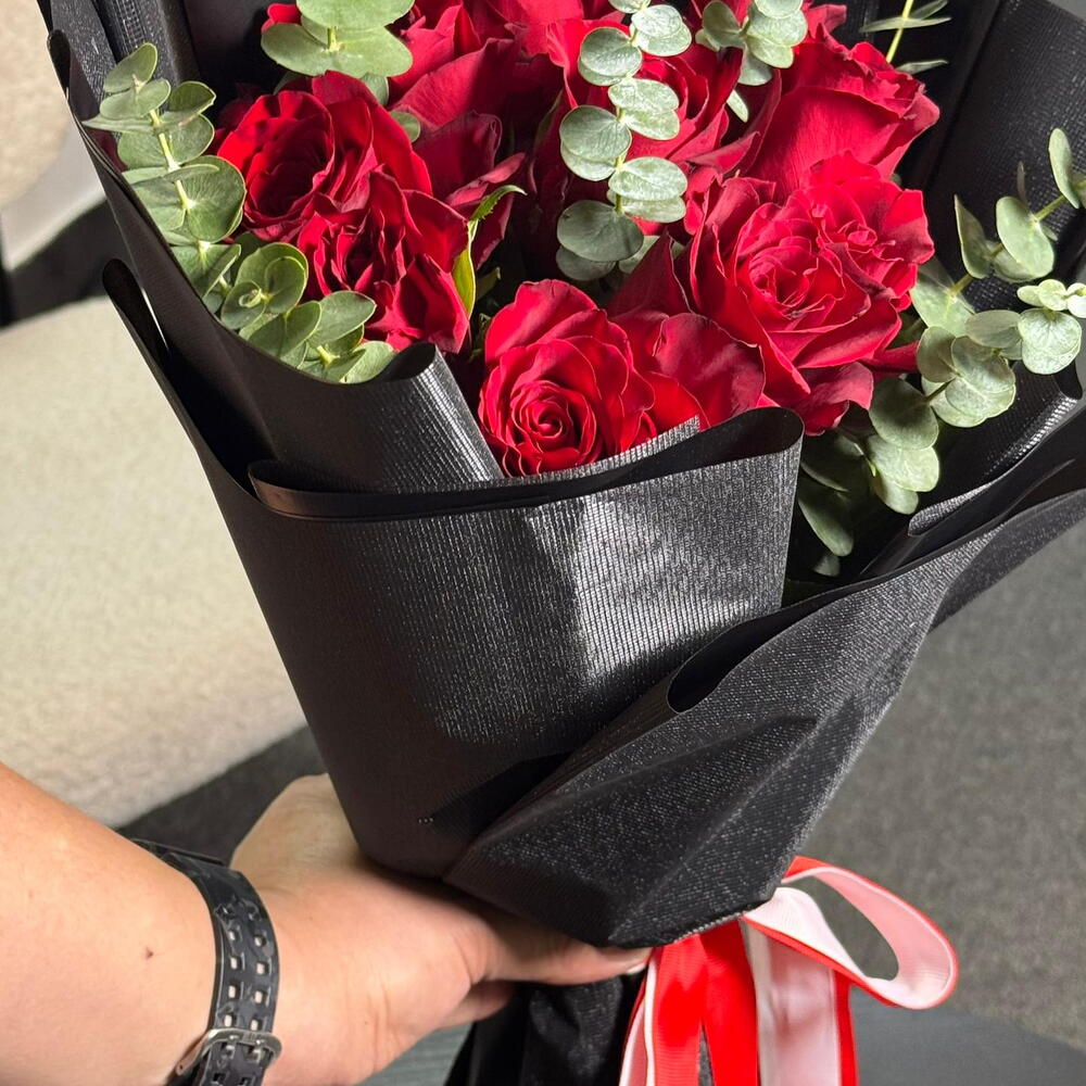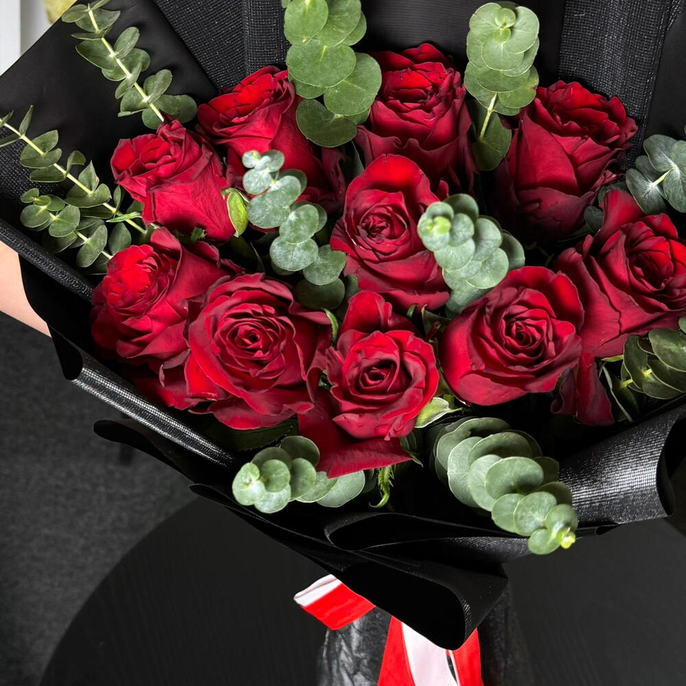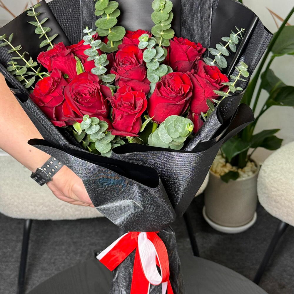 Eucalyptus - 15 шт. розы красные - 10 шт.