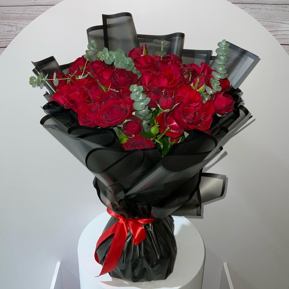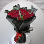 Red rose - 10 шт. wrapping paper - 5 шт. маленькая роза - 5 шт. эвкалипт - 5 шт.