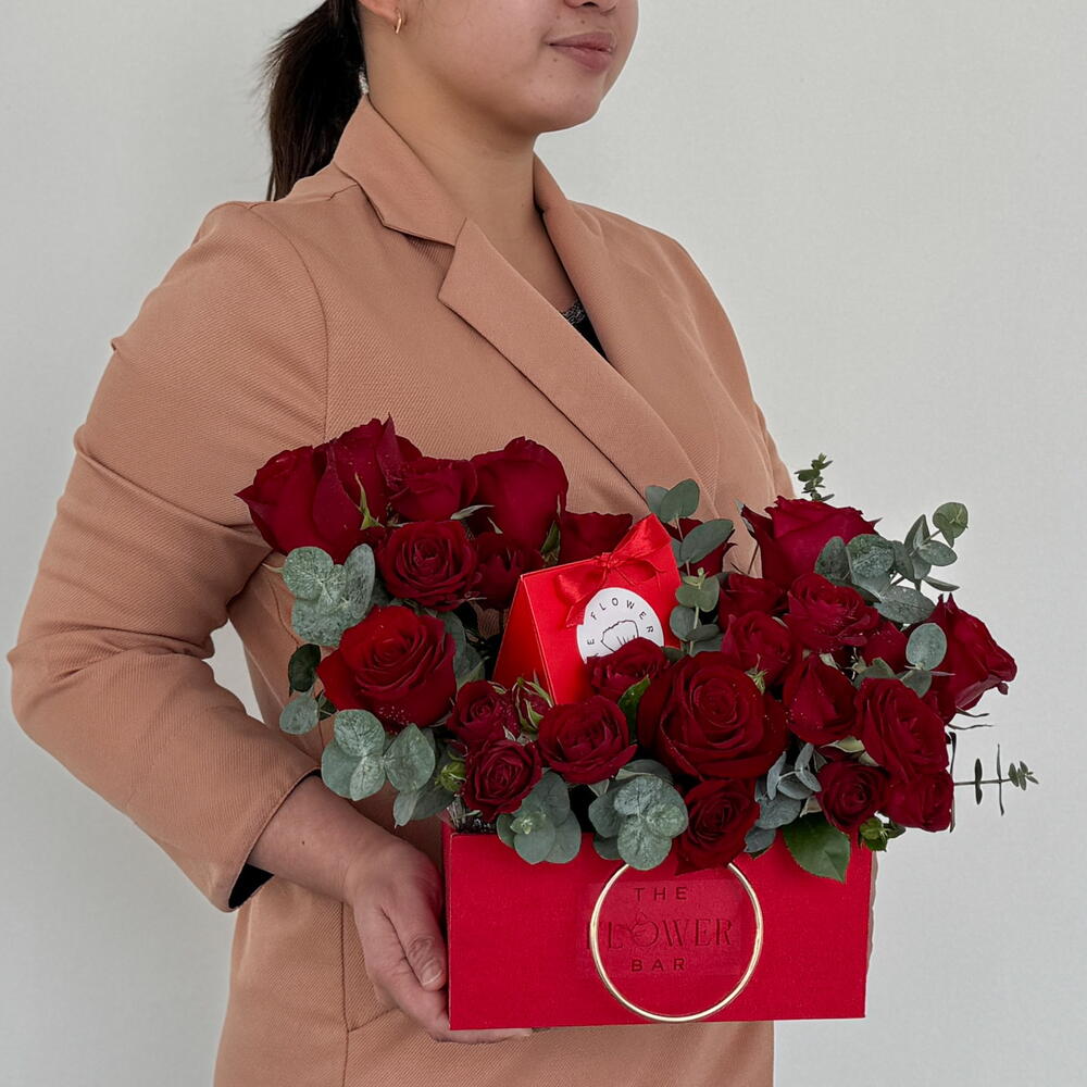 В этой очаровательной коробке 9 больших красных роз и 3 кустовые розы, а также небольшая красная коробочка с 4 конфетами бельгийского молочного шоколада разных сортов. Идеальный подарок на День святого Валентина!