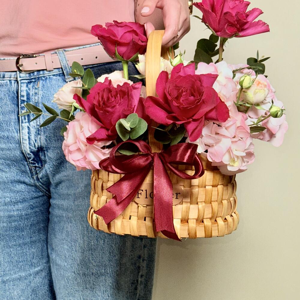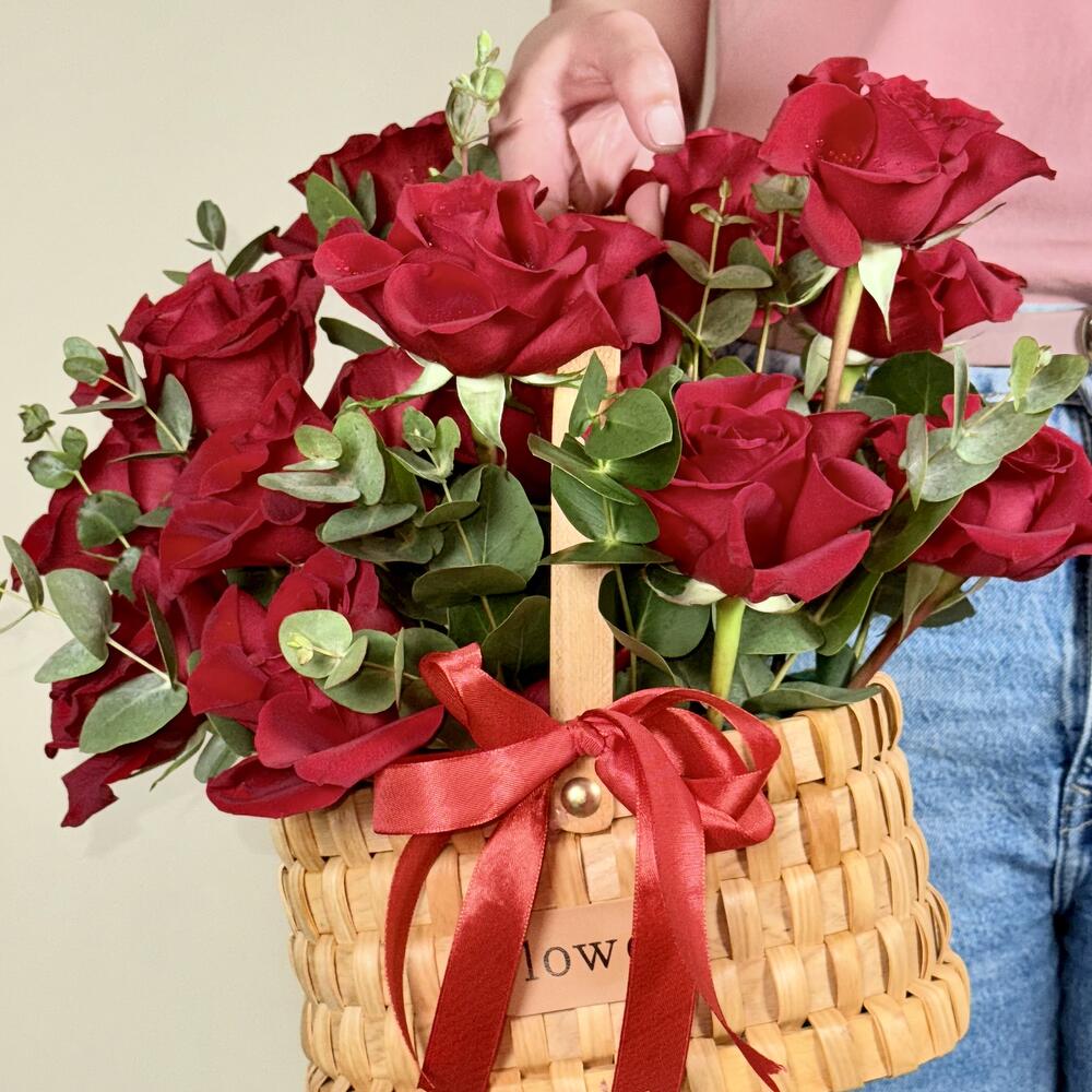 Eucalyptus - 4 шт. rose red - 15 шт. bamboo basket - 1 шт.