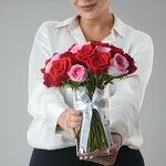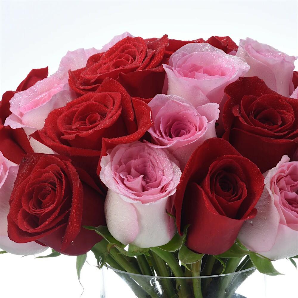 стеклянная цилиндрическая ваза - 1 шт. red roses - 16 шт. pink roses - 16 шт.