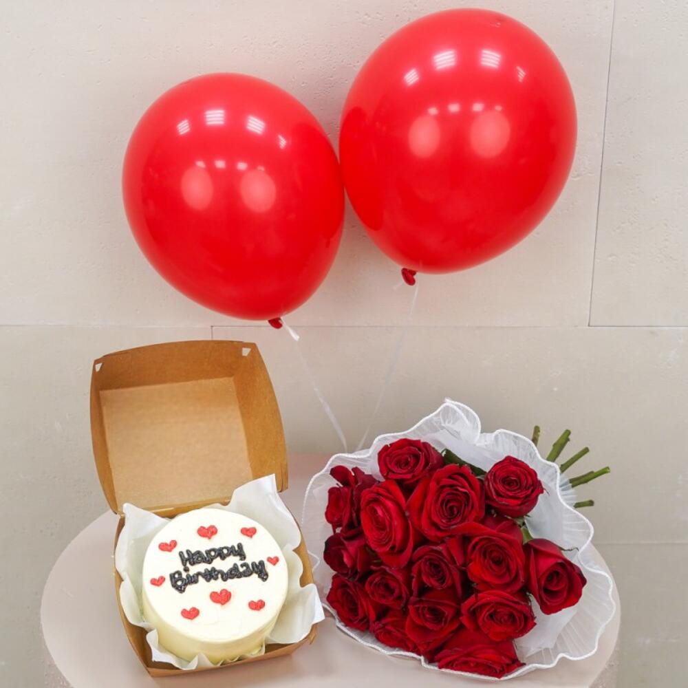 красные воздушные шары - 2 шт. red roses - 31 шт. мини бенто торт - 1 шт.