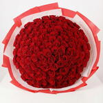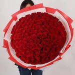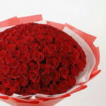 101 красная роза — очень красиво. Цветы свежие и большие. Букет выглядит очень красиво и пышно. Доставка вовремя. Я очень довольна.